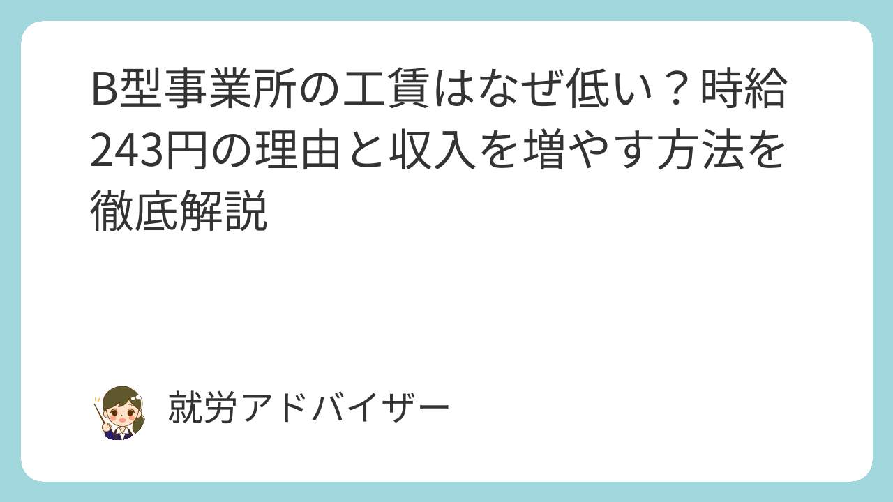 B型事業所の工賃はなぜ低い?時給243円の理由と収入を増やす方法を徹底解説